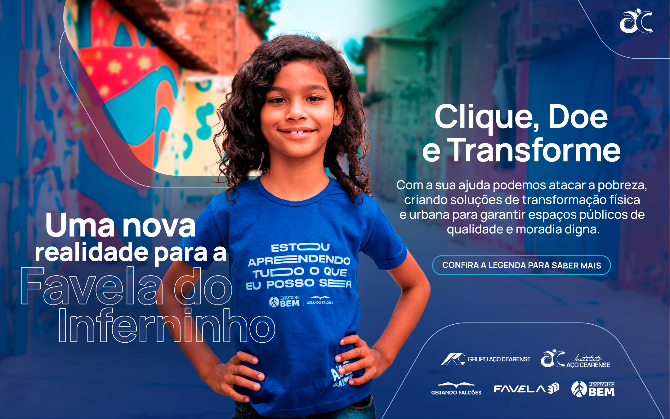 Na próxima quinta-feira, 27, às 18h, no Beco Céu, na Travessa Arthur Borges, 55, bairro Vila Velha, será realizado o lançamento oficial do Projeto Favela 3D Ceará. O evento formalizará o início das atividades do programa dentro da Favela do Inferninho e apresentará o cronograma de projetos que serão realizados até 2025 aos moradores da comunidade, e contará com a presença dos representantes da Prefeitura de Fortaleza e do Governo do Estado do Ceará, parceiros da iniciativa privada, e por Rosemeire Matos, Diretora Administrativa do Grupo Aço Cearense (GAC) e Presidente do Instituto Aço Cearense (IAC).